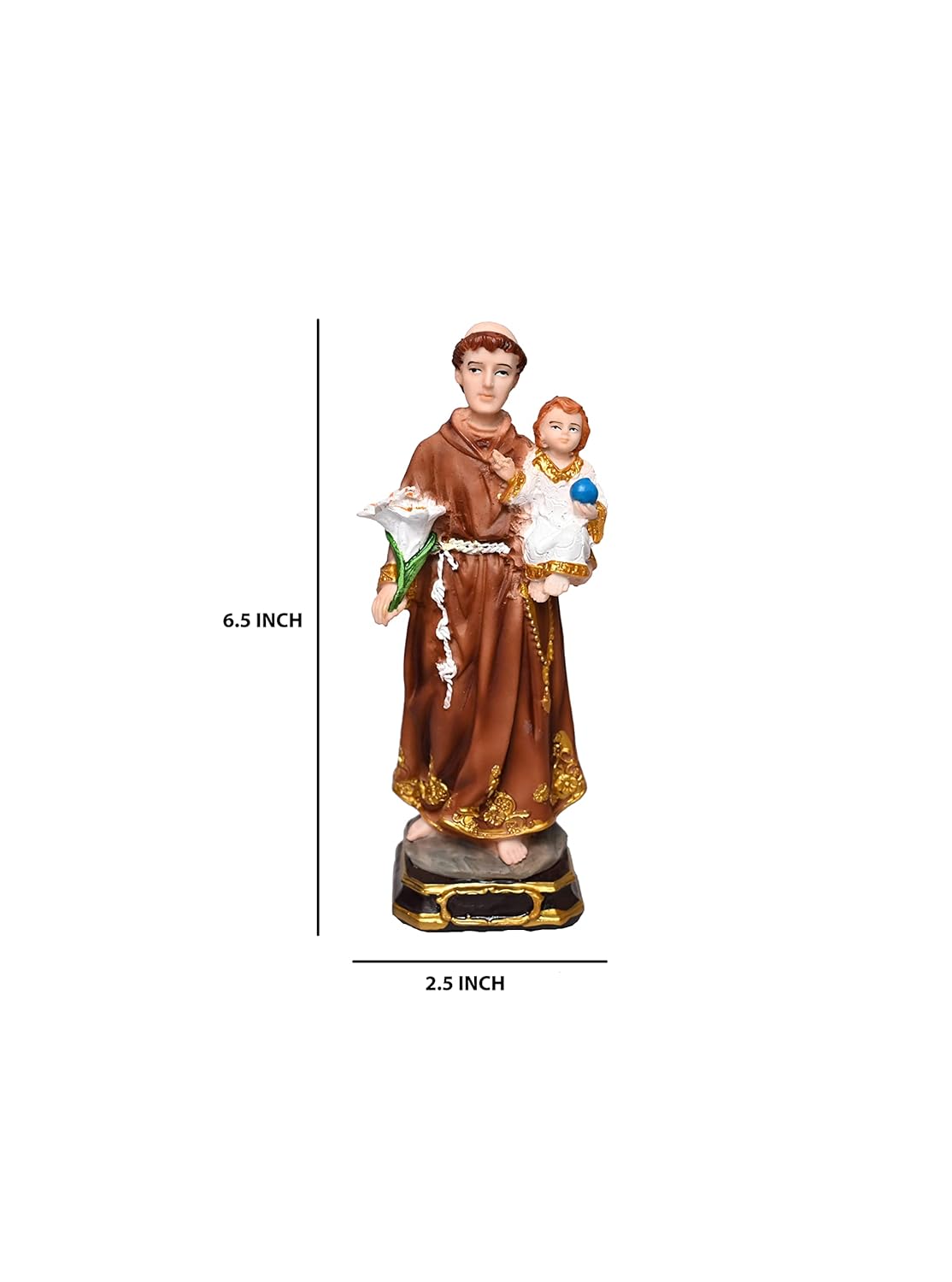 St Anthony/Anthony of Padua Idol Perfect for Home/Prayer Room/Gifting & Decoration (6.5 x 6.5 x 19 cm) (5 x 5 x 17 cm)